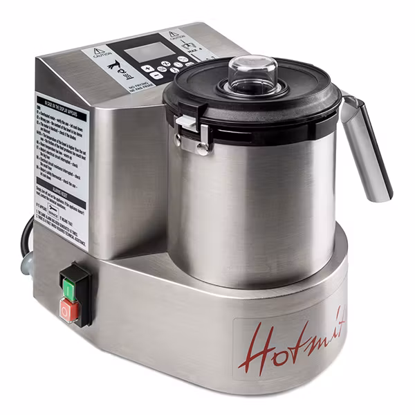 HotmixPRO Gastro är oersättlig på grund av dess mångsidighet. Gastro-modellens olika funktioner inkluderar upphettning upp till en temperatur av 190°C (374°F). Användningen av maskinen sköts på ett väldigt enkelt och smidigt sätt utan krav på några avancerade inställningar. Du sköter allt via den digitala displayen med några få knapptryckningar. Tack vare den specialkonstruerade knivenheten kan den användas både som mixer eller som blandare. Knivenheten kan köras ända upp till 12500 rpm vilket gör processandet rekordsnabbt. HotmixPRO Gastro kan också blanda och mixa med en konstant hastighet. Du har flera olika hastigheter att välja mellan, allt för att skapa så goda möjligheter att lyckas som möjligt. Även möjligheten att ställa in så att maskinen slår av då livsmedlet har uppnått en viss temperatur sparar massor tid och garanterar slutproduktens kvalitet. En annan fördel med HotmixPRO Gastro är att du kan hälla alla ingredienser direkt i bägaren utan att lossa på locket.