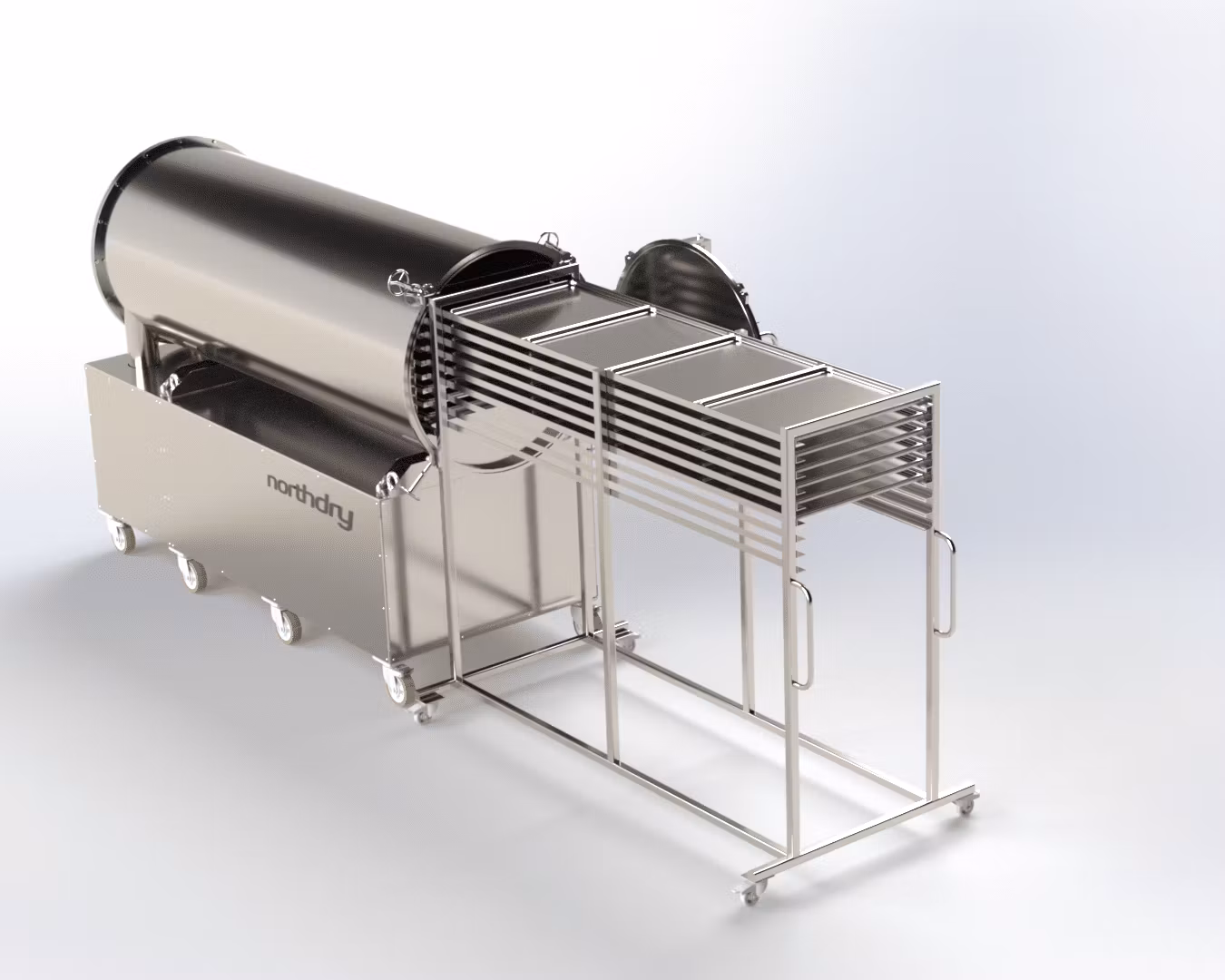 Northdry G750 Kommer med inlastningsvagnar och insatser med Gastronorm standard. Vilket gör att alla komunkök och storkök i Sverige kan använda sina befintliga kantiner och plåtar direkt in i frystorken. Utan att behöva lasta om all mat på andra kantiner och plåtar som är fallet med andra märken. Det går alltså att ta samma GN 1/1 kantin som står i Rationalugnen och lasta den rakt in i Northdry frystork.