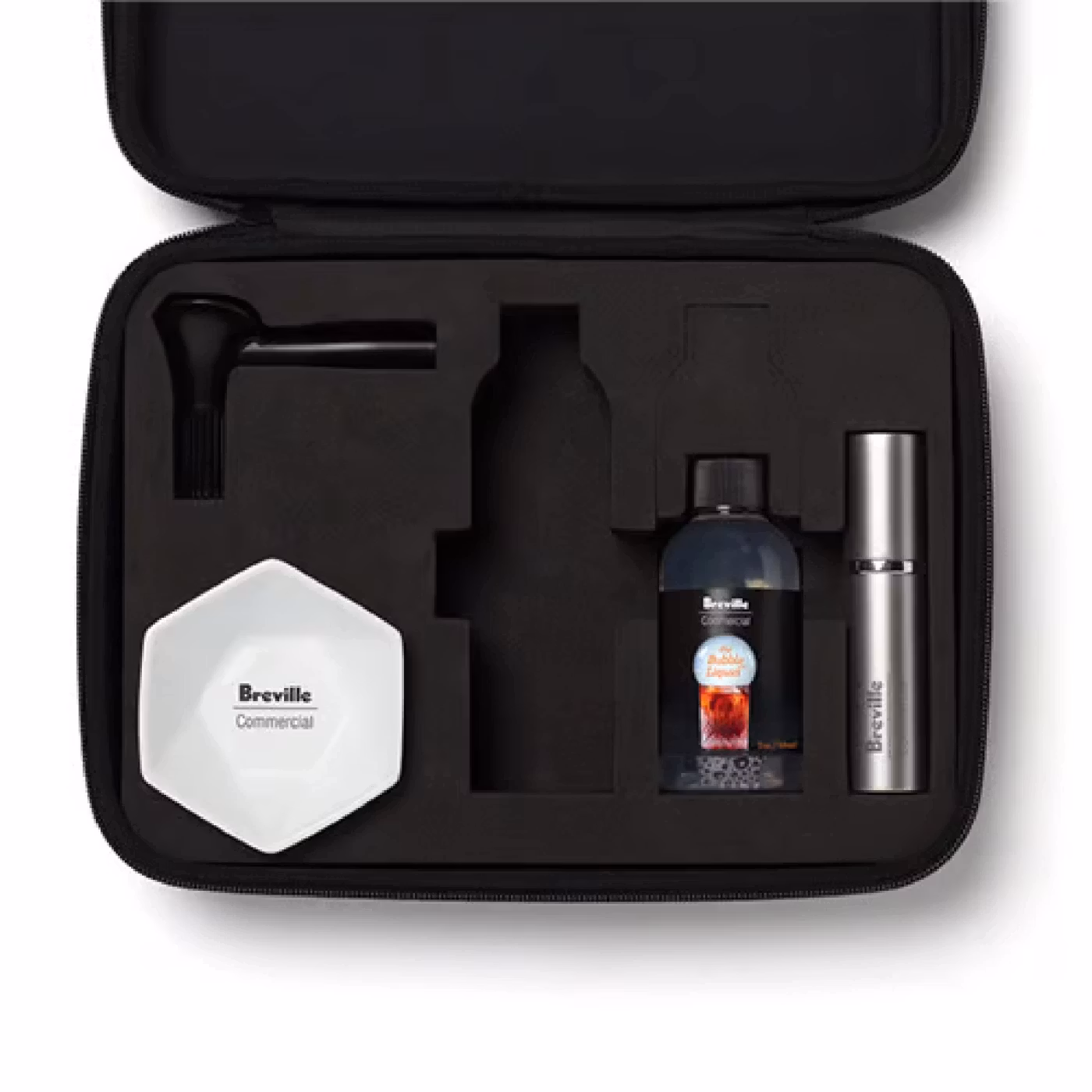 Gör rökfyllda bubblor på din drink eller maträtt! Äntligen har Sage Commercial by Polyscience - den älskade producenten släppt sitt bubblermunstycke. Med hjälp av dessa förvandlar du din Smoking Gun eller Smoking Gun Pro till en såpbubbelmaskin som gör rökfyllda bubblor på drinkar och mat. Som vanligt är kvalitet ett riktmärke, och den här kan användas även i en professionell bar, men producerar i sin egen takt. Nu kan du garnera cocktails och alkoholfria drycker med rökfyllda bubblor sprängda av arom och smak. Setet innehåller bubbelmunstycke, 1 flaska med 2 fl. oz (59 ml) Bubble Liquid™, keramisk doppkopp, minisprayflaska och förvaringsväska.